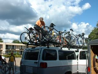 We went to lunch at the Magnolia Cafe and after lunch I called my AAA travel agent and that's where I made my flight plans over my cell phone, thank goodness for cell phone technology. [Editor's note: I swear I didn't make that up - John actually said this!] Later in the afternoon, Mike loaded many of our bikes onto the top of a support van and delivered them to a bike shop in Baton Rouge. The shop will pack them up and ship them back home via UPS ground. I expect that it will take about 2 weeks. This has been a physically and mentally exhausting day.