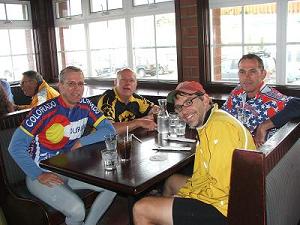 We had a very difficult 6 - 8% climb for 1 mile at about 8 miles out today and many 'rollers' throughout the day. I was riding with Tom Dunn, and Tom Rudbeck and we stopped for lunch at the Pelican Restaurant in a town called Pacific City. Tom Dunn met another cyclist (Tom Carroll - lots of Toms!) outside the restaurant and invited him to join us and we shared stories (see photo). Tom C. is a temporarily retired lawyer from Washington DC. He had been practicing for 12 years and this past May decided to cycle from DC to Oregon and then down to San Francisco. So far he has been on the road cycling and camping out for 3 months. He mentioned that the highlight for him was the Rocky Mountain National park's 'Trail Ridge Road' from Estes Park to Grand Lake. Apparently this is the highest continuous paved road in the US. It was interesting talking to him about his adventures. As we were leaving, I dropped my camera as I was getting on my bike. The batteries fell out and the lens cover fell off. I was a bit upset with myself but I put it back together and it is working ok so far.